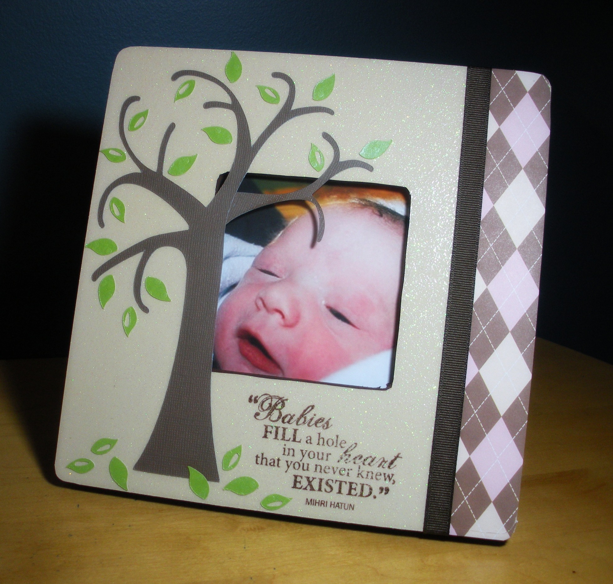 A frame made specifically for Baby Colby's picture. The tree is made to match the 6 foot tree we made out of vinyl for his room.