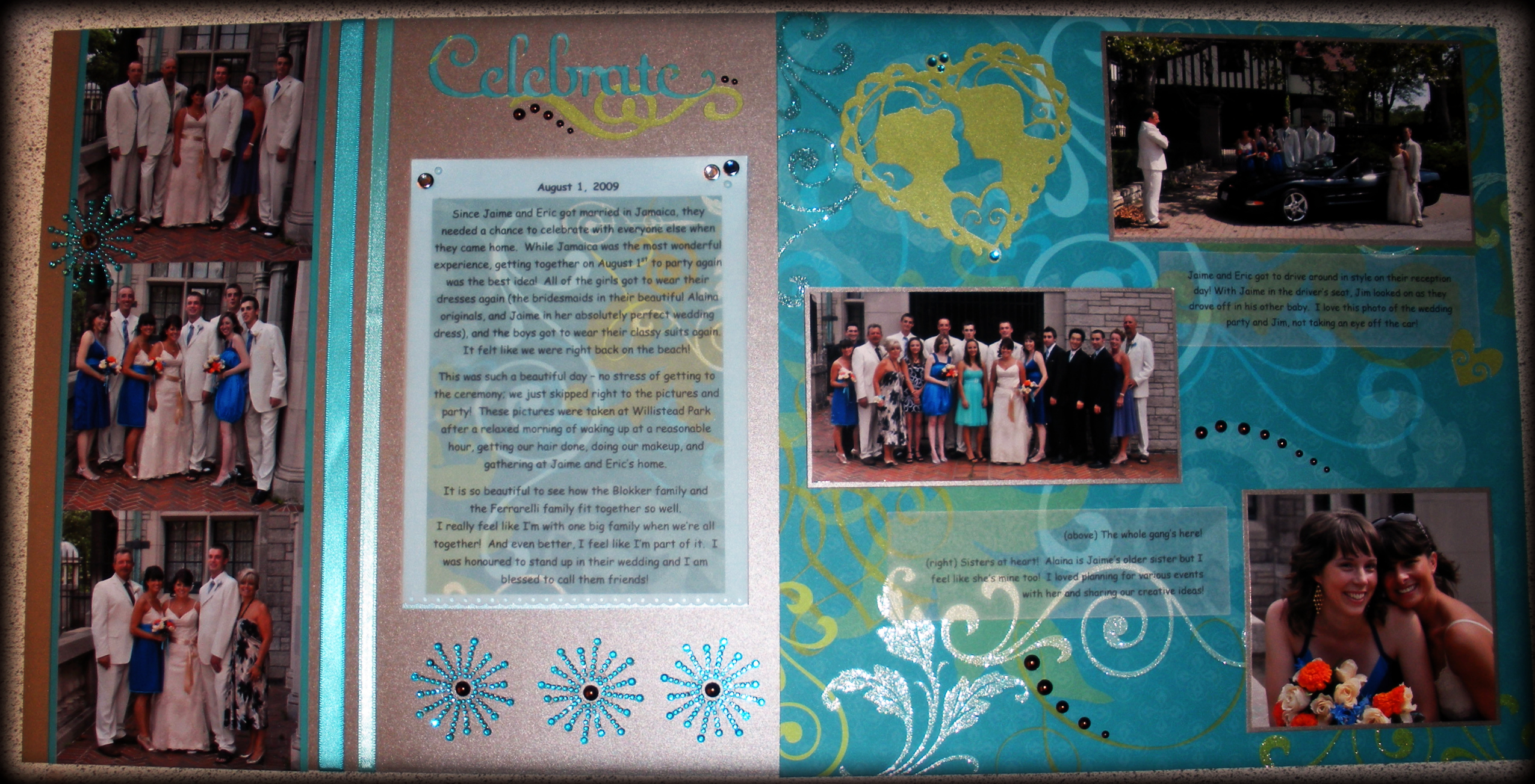 Today I get to share my first layout in a long time – I decided to print some photos from my best friend’s wedding reception afternoon (they got married in Jamaica and this took place about a month later). The photographer got some great pictures that afternoon and evening and I wanted to showcase the ones we took outside.