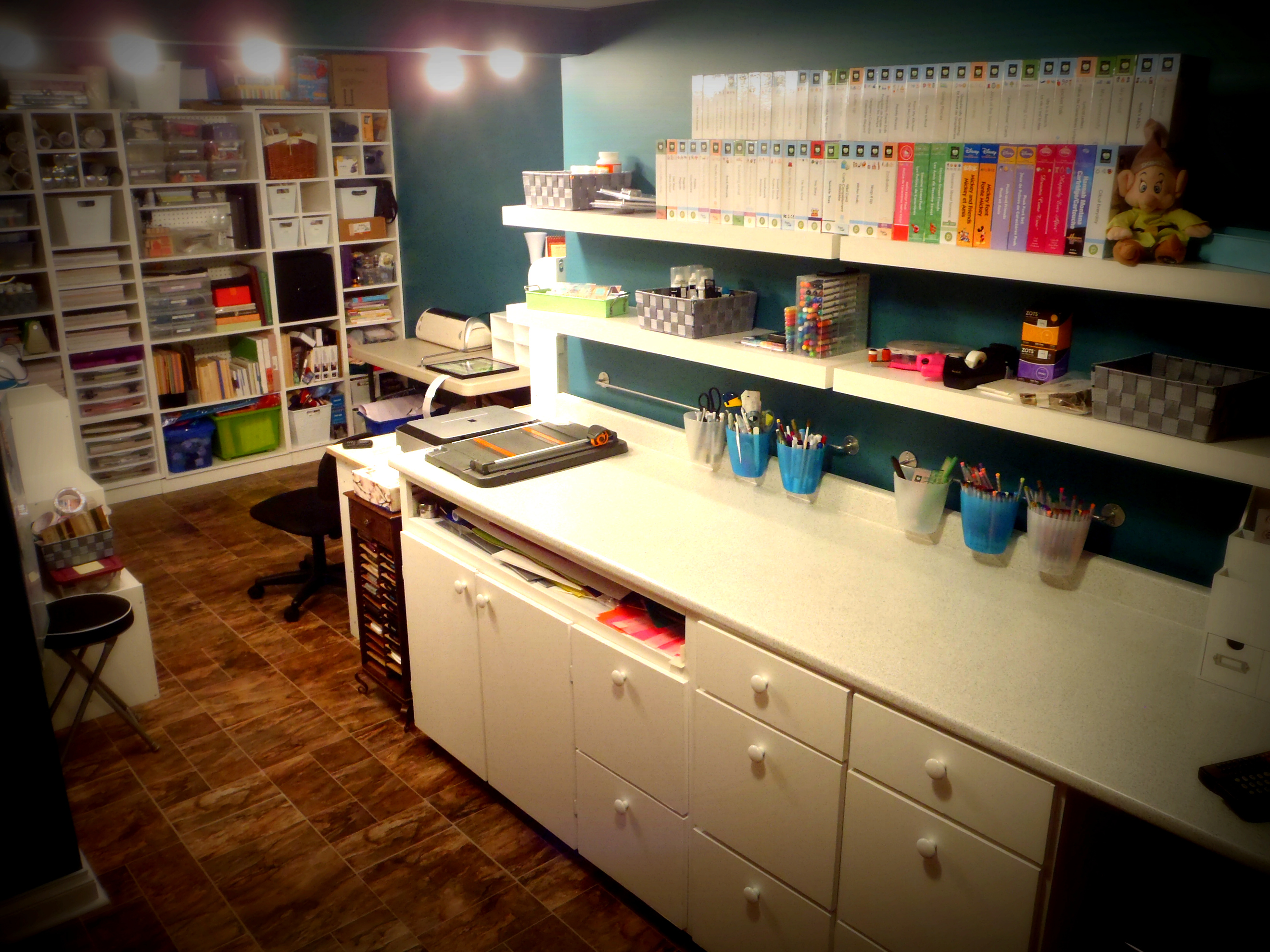 Since a flood in our basement forced me to pack up everything from my studio and store it somewhere else for a while, I have been trying to look on the bright side… It was a chance to change things up a bit! I’ve moved my studio around and while I’m still getting used to it, I am enjoying finding new storage ideas and uncovering long lost gems in my mounds of supplies!