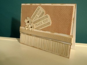 One of the great things about the Art Philosophy cartridge is the coordinating stamps from CTMH. I decided to make a quick thank you card using a couple ticket shaped cuts and one of the coordinating stamps. The flowers are also cut from the Art Philosophy cartridge in various sizes.