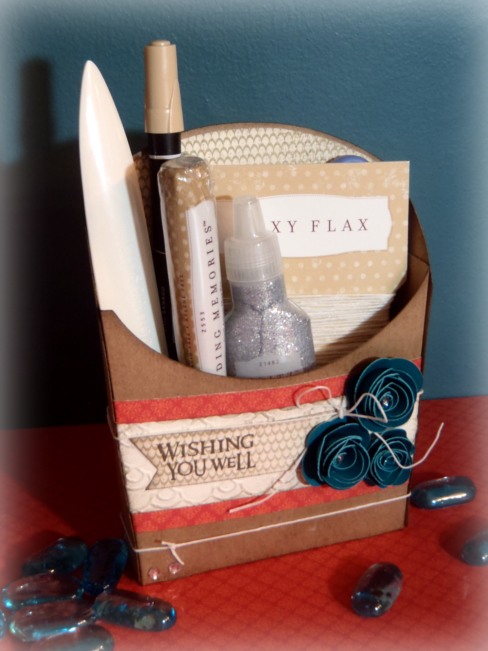 Now, this week, I’m the sick one!  I’ve had laryngitis now for 6 days so just for fun I filled my creation with things I know any crafter would love if they weren’t feeling well!  lol  The thought of using these supplies actually did get me up and into the studio to create!