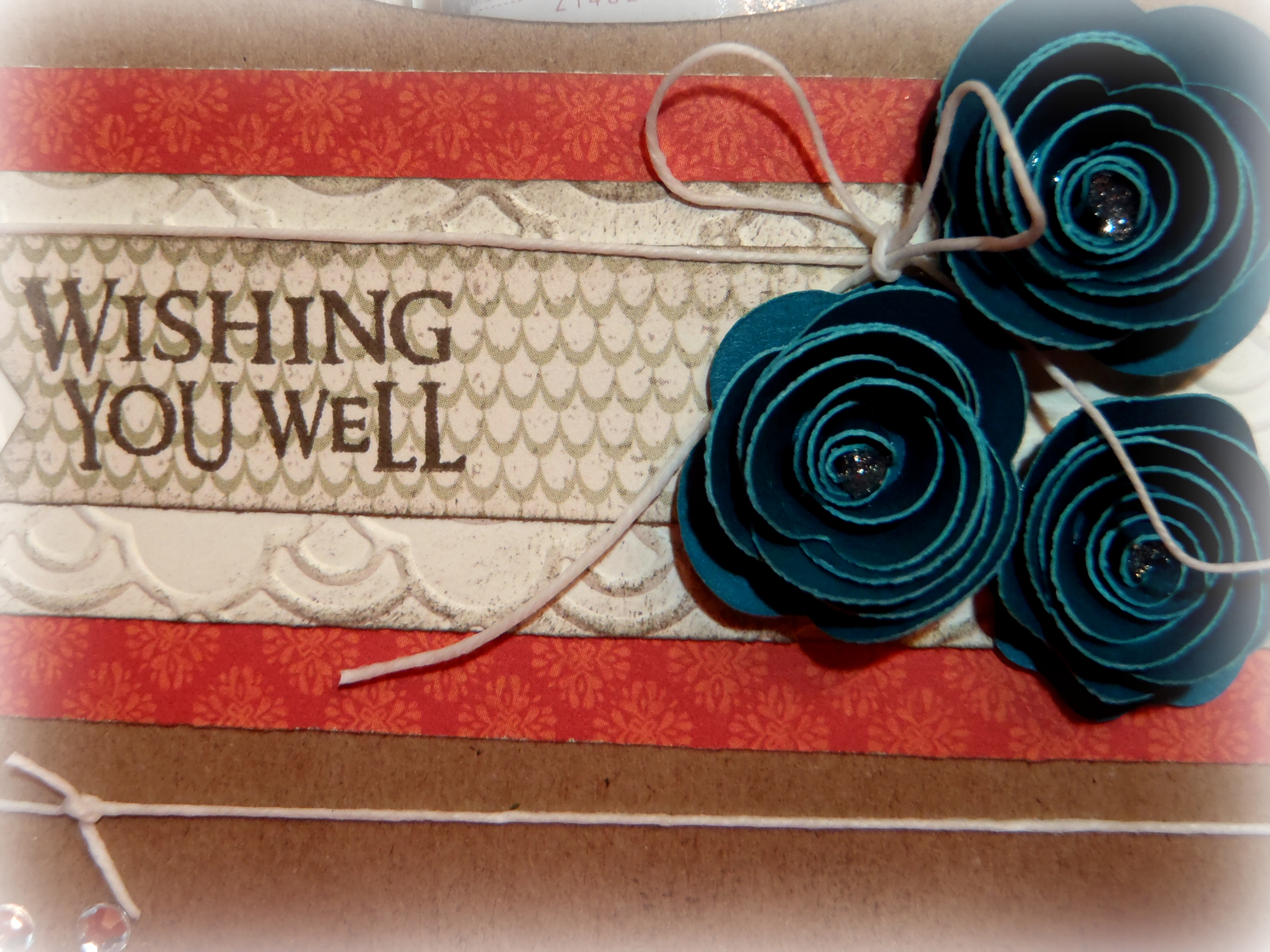 The Challenge: Create a Get Well card or gift set for a friend, family member, or acquaintance. Be sure to incorporate a Cuttlebug embossing folder, kraft cardstock, and string somewhere on your project.