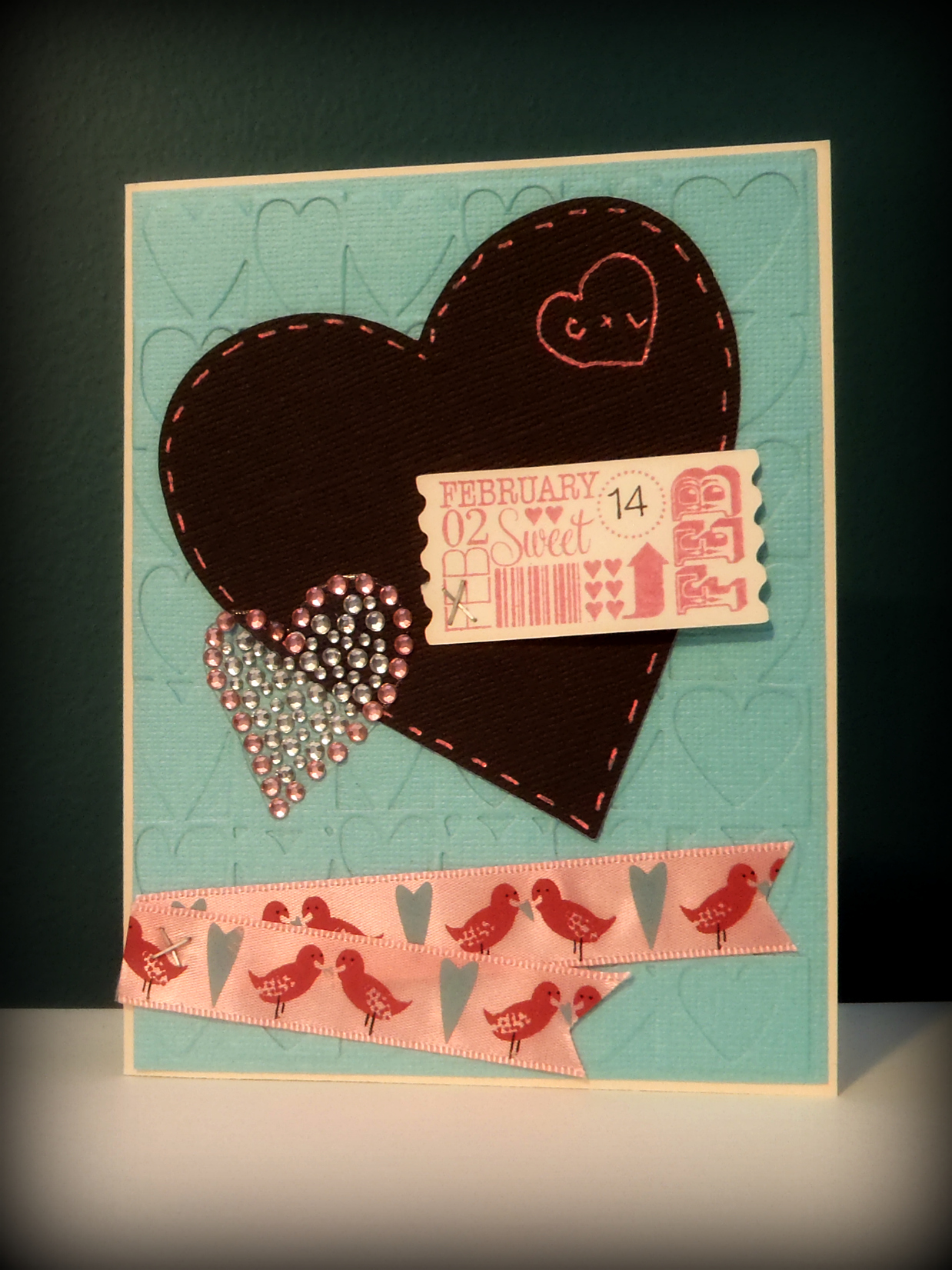 The Challenge: Create a Valentine’s Day Card. Include sequins or gems and ribbon.
