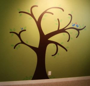 Yesterday I had the pleasure of putting up a vinyl tree in the future room of someone who is sure to be a very adorable and very loved little baby! Along with my mom as my assistant (thanks mom!), we traveled to Chatham to see friends from my undergrad and to add a little something to their nursery.