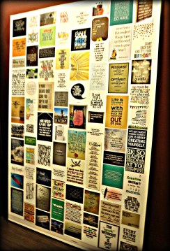 How did I do this?  Well… one of the first boards I started adding to on Pinterest was my “Inspiration” board, where I would add inspirational and motivational quotes – some serious, some humorous.  I was ending up with quite the selection and decided that I wanted to have some of them visible to me on a daily basis.  It took me a couple hours every day for about a week to go into each pin on that board and save the image to my computer.  I then created a poster on my computer using the images (you can use any program that will let you add multiple photos).