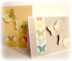 The Circle Blog had an Art Inspiration challenge and as soon as I saw the butterflies in the inspiration piece, I was reminded that I hadn’t used the butterfly pattern from my Dotty for You paper yet!  I quickly grabbed it and did up a few cards using the butterfly theme I was reminded of.  The butterflies are from Art Philosophy and the stamped sentiment is from a CTMH set called A Tree I just love how versatile this paper pack is!!