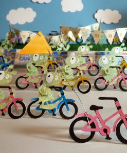 I used Art Philosophy for the banners, Boys Will be Boys for the bikes, Everyday Paper Dolls for clothes, Create a Critter for Clouds, and Cricut Everyday for the little bug riders 🙂