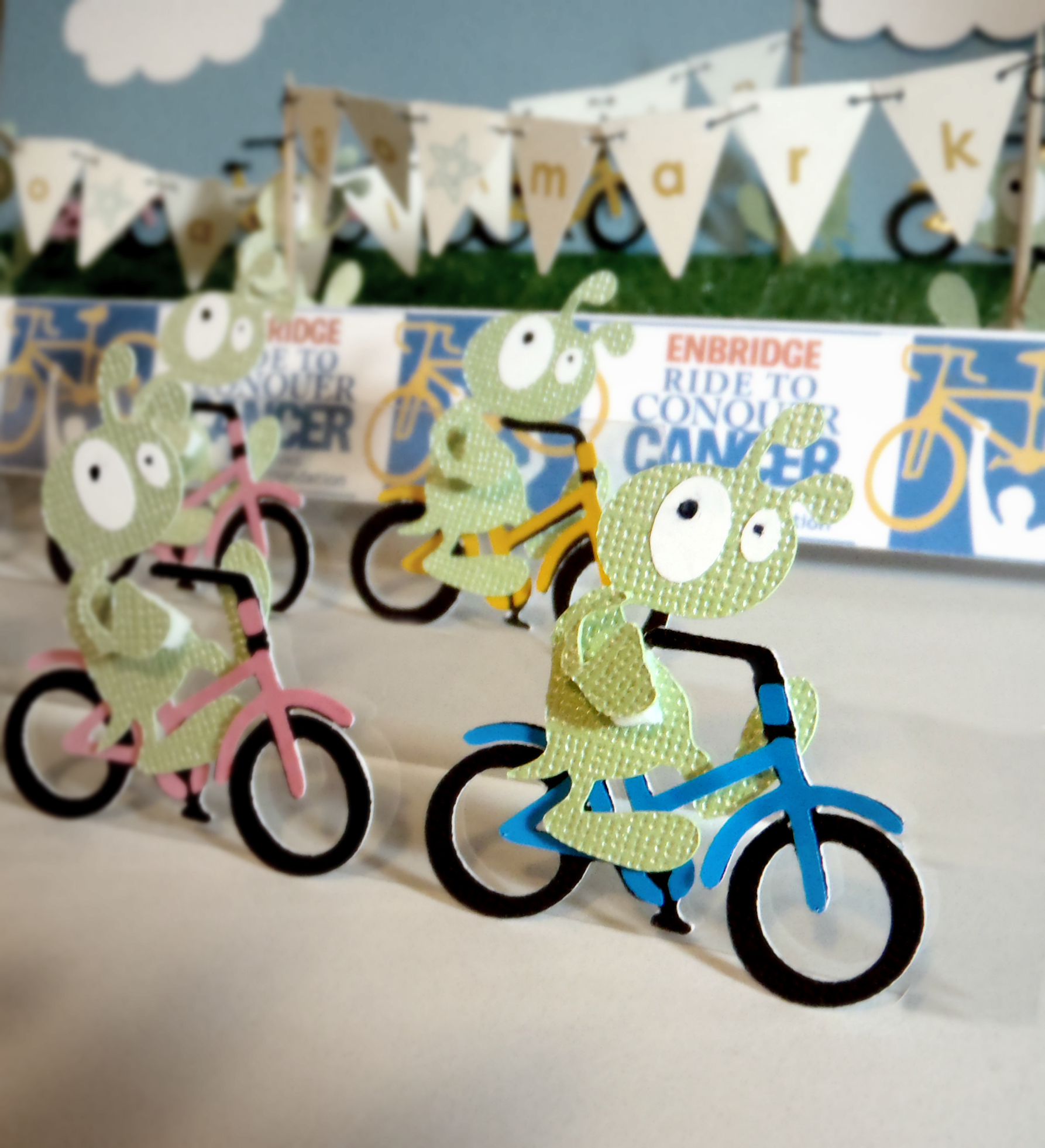 Here’s a look at a Cricut style representation of their experience 🙂 All of the cancer survivors that were participating in the ride had yellow flags attached to their bikes, just like Allison’s Cricut version…