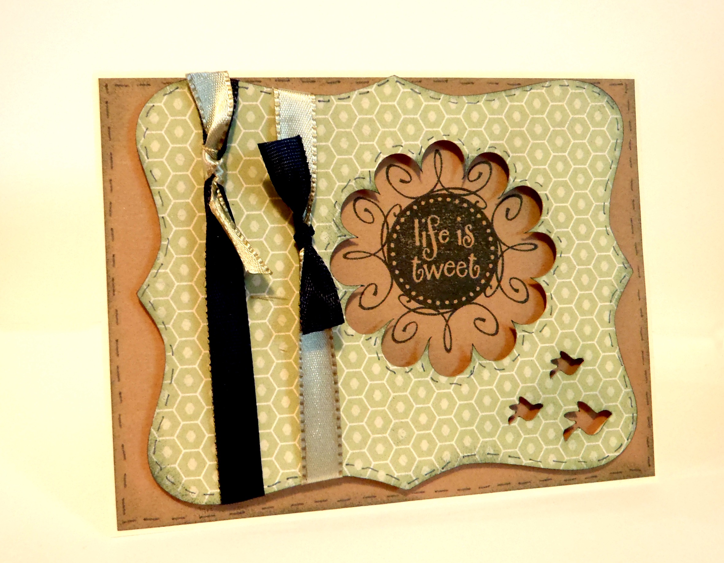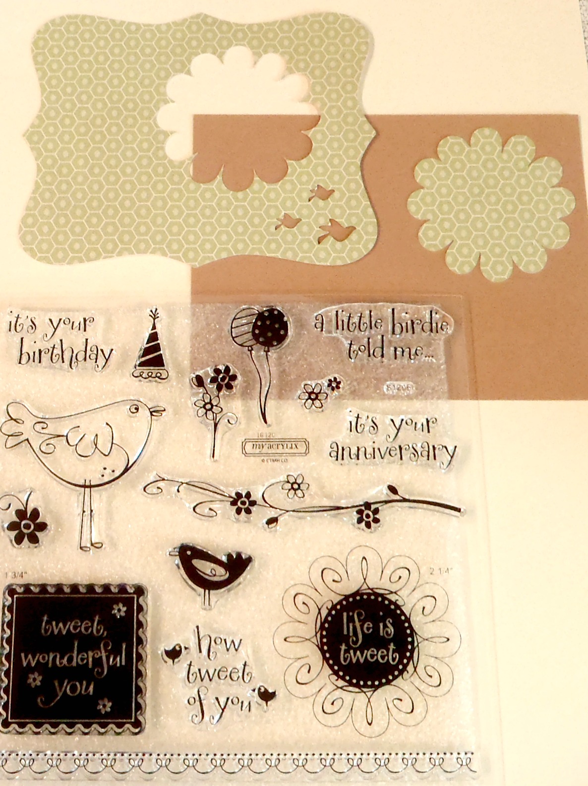I will put the scallop circle right in the Life Is Tweet stamp envelope so that I have it handy for another project
